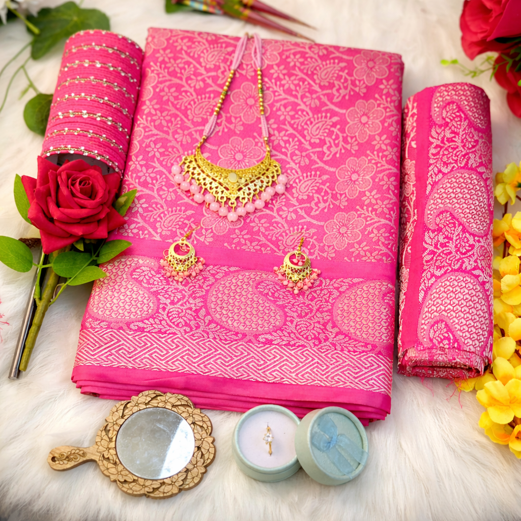 Best gift for wife – কাতান বেনারশী শাড়ি এর কম্বো প্যাকেজ